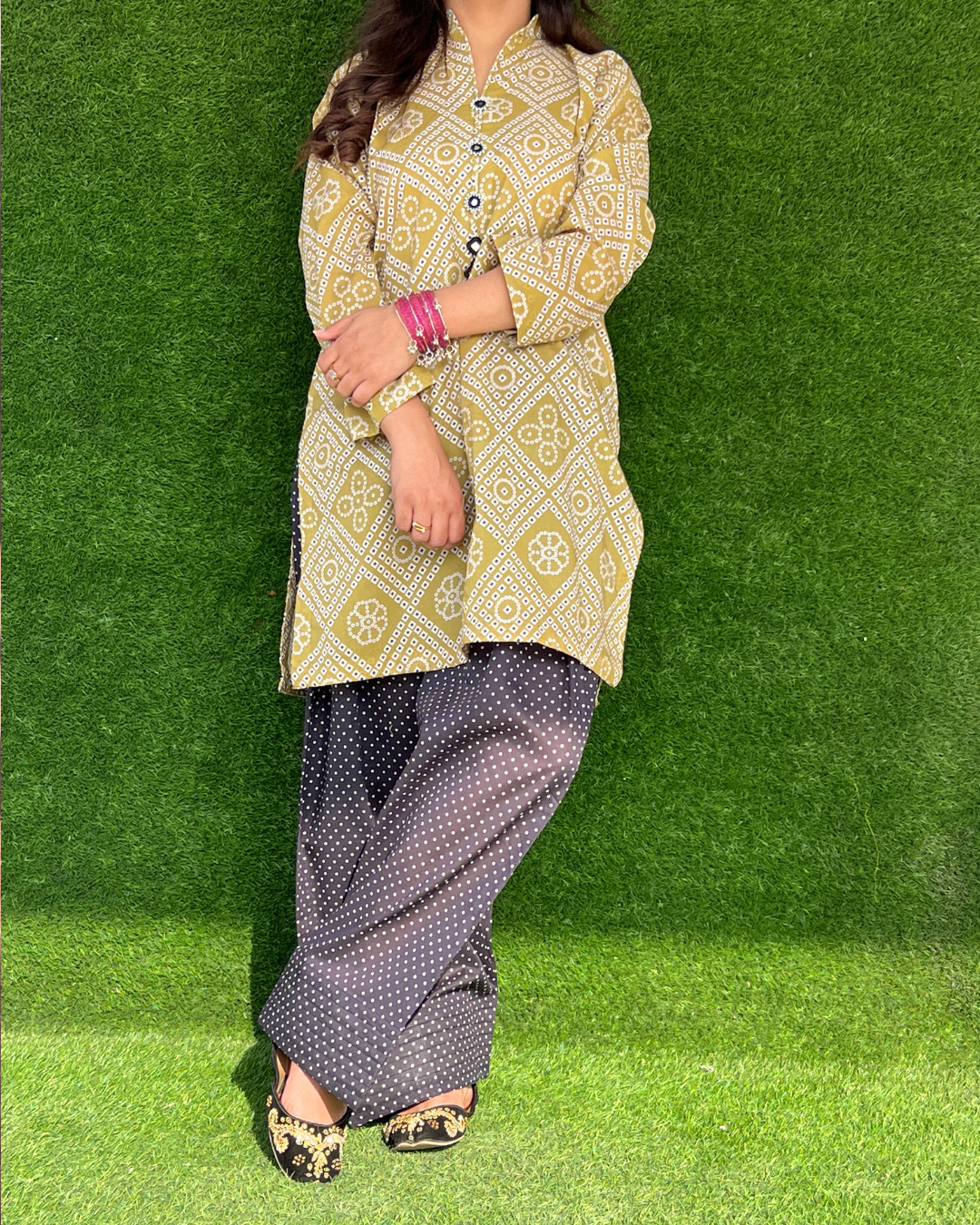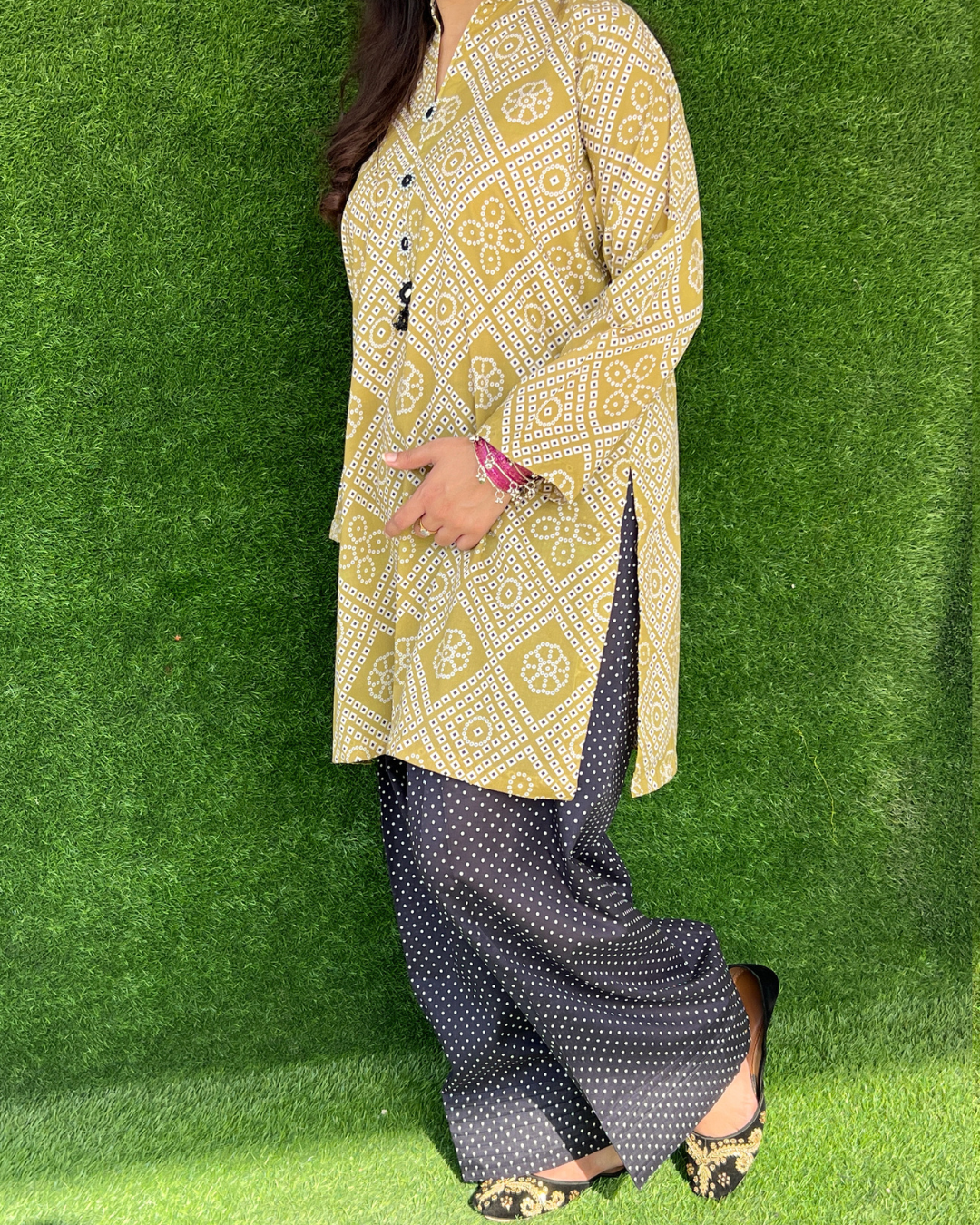 - Includes: Farshi shalwar, Shirt