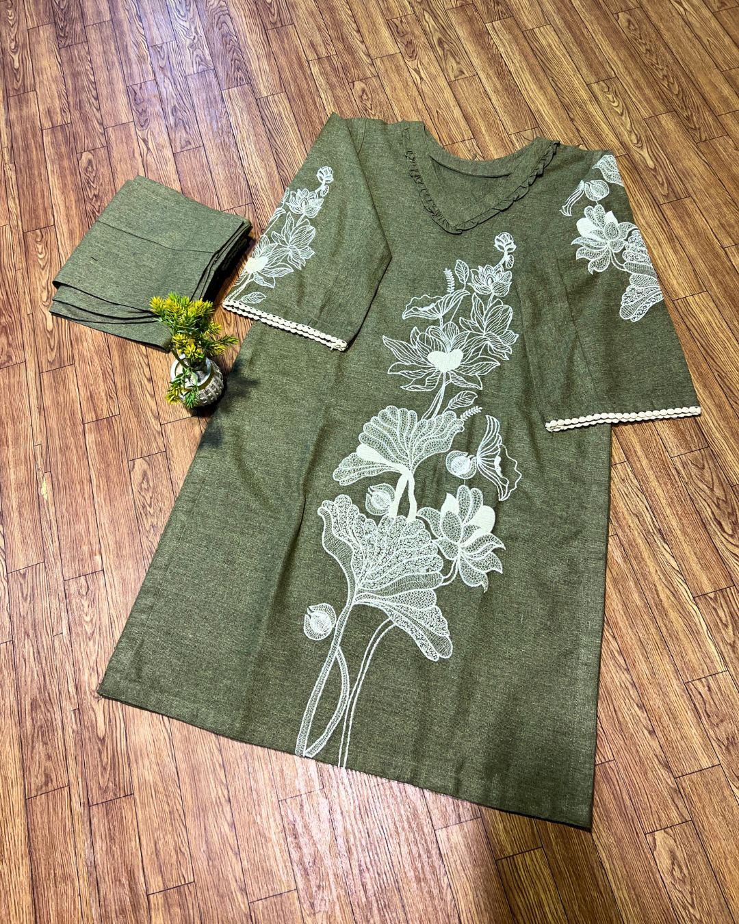- Includes:Â Winter Fabric Beautiful Ladies Embroidered shirt with Trouser
