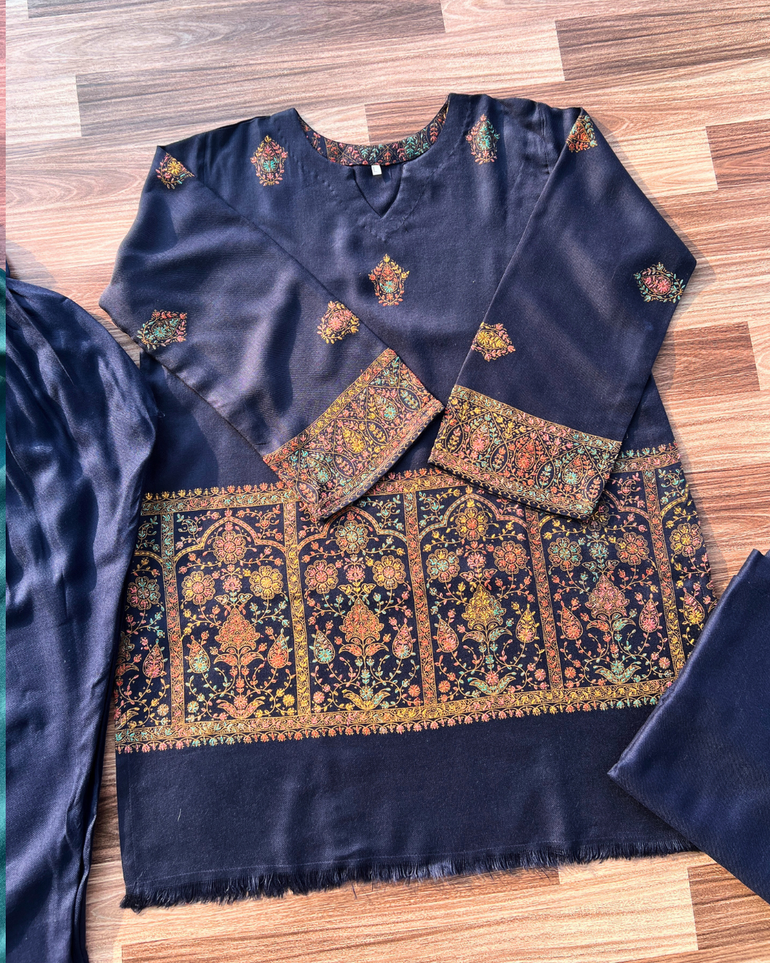 - Includes: Peshmina wool shirt , Peshima shawl , Peshmina shalwar